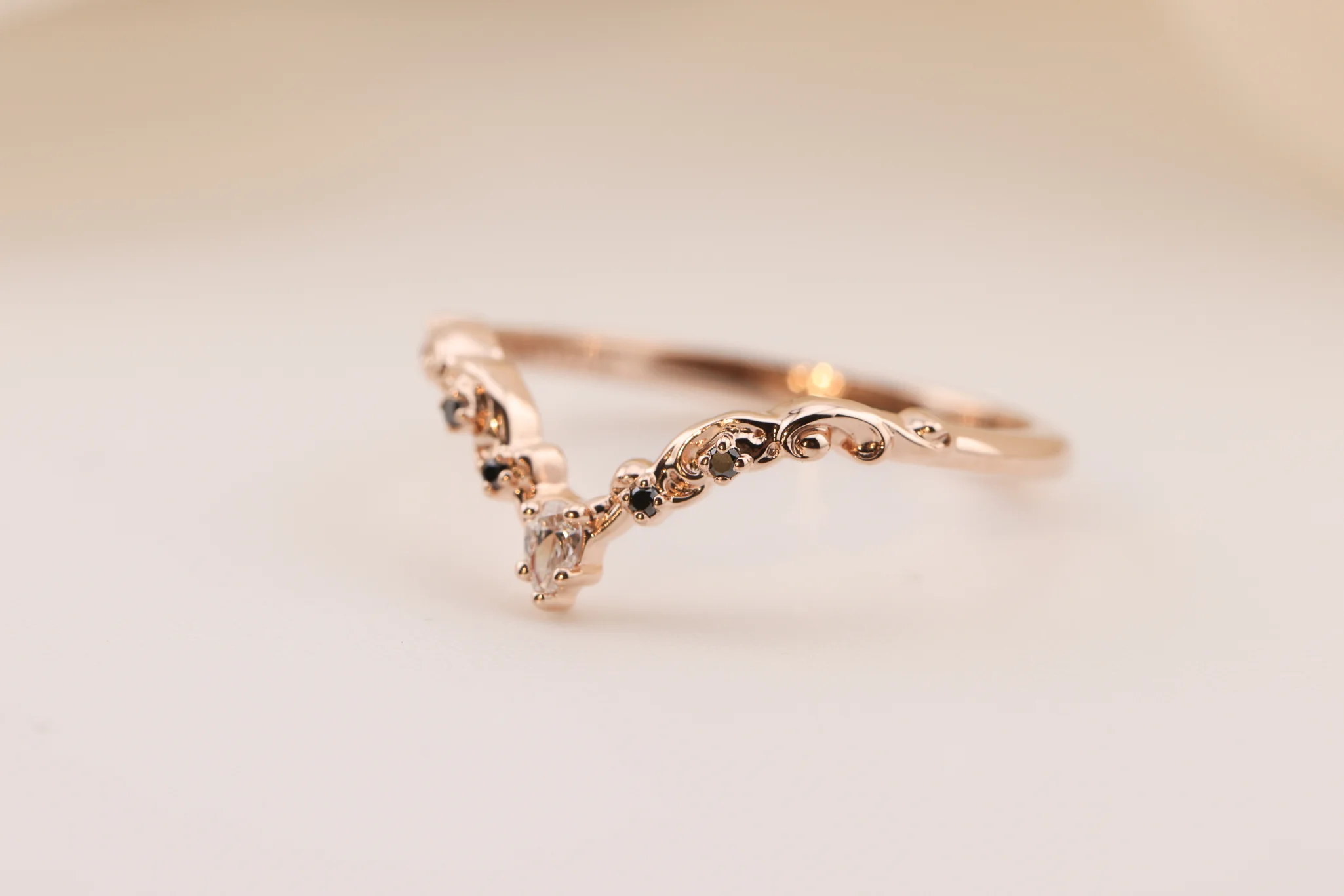 - Deep curved filigree. This ring has a very deep curve so looks best with my Aurora three stone or another ring that needs a slightly deep curve