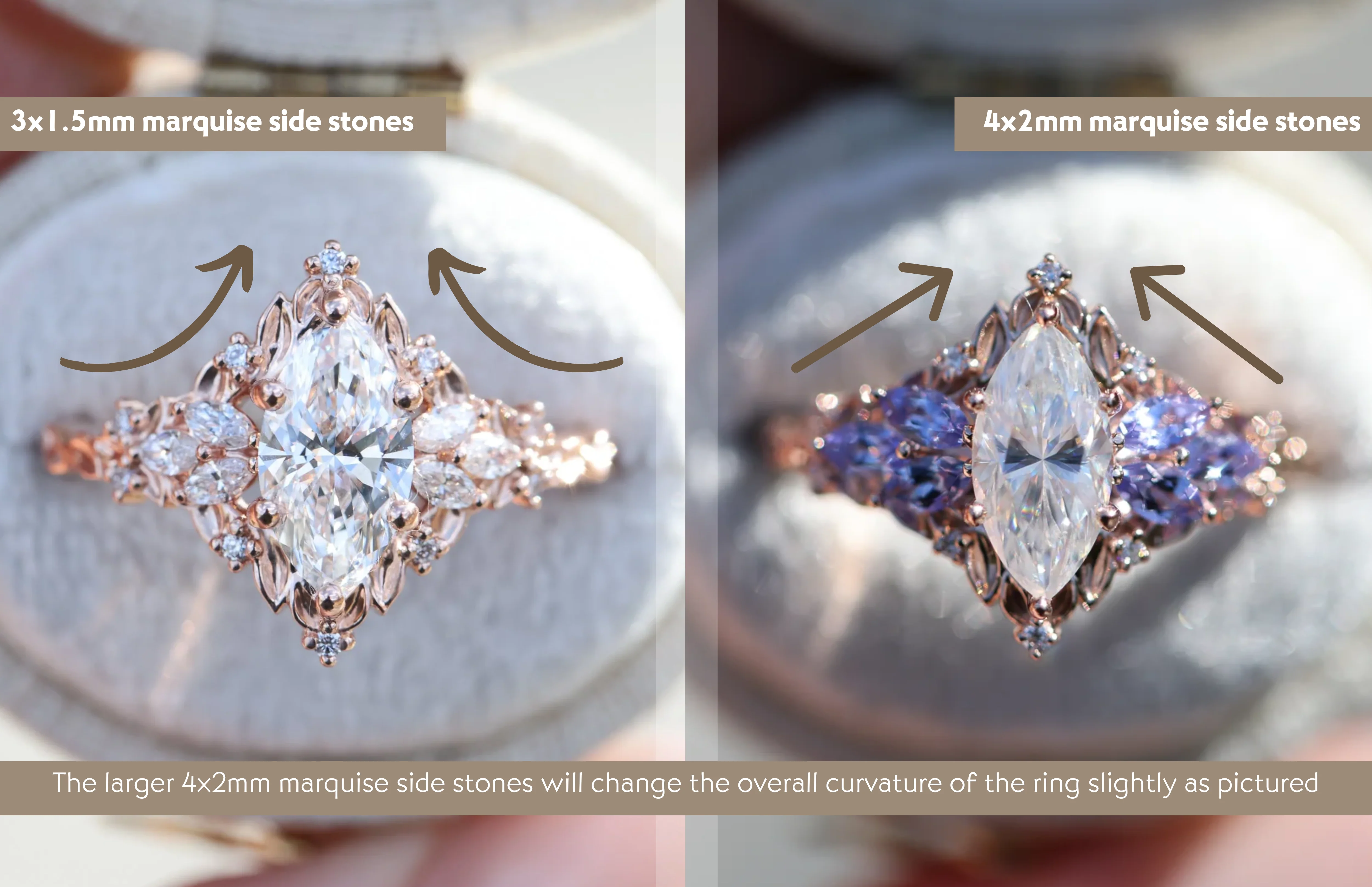 - Two, 4x2mm marquise end stones (you can select these to be the same or different stone from the side stones)