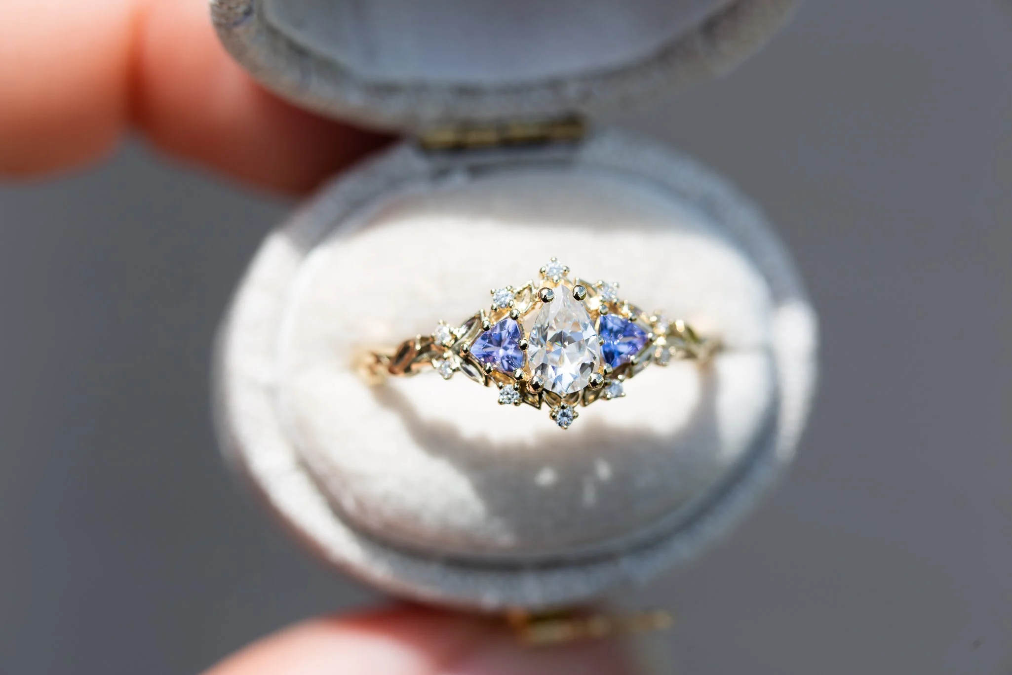 Customize your own 6x4mm pear Briar Rose Three Stone