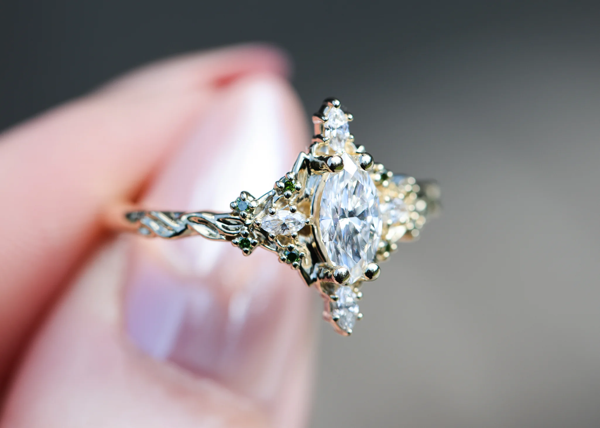 Customize your own Briar rose three stone with marquise accents and 8x4mm marquise center