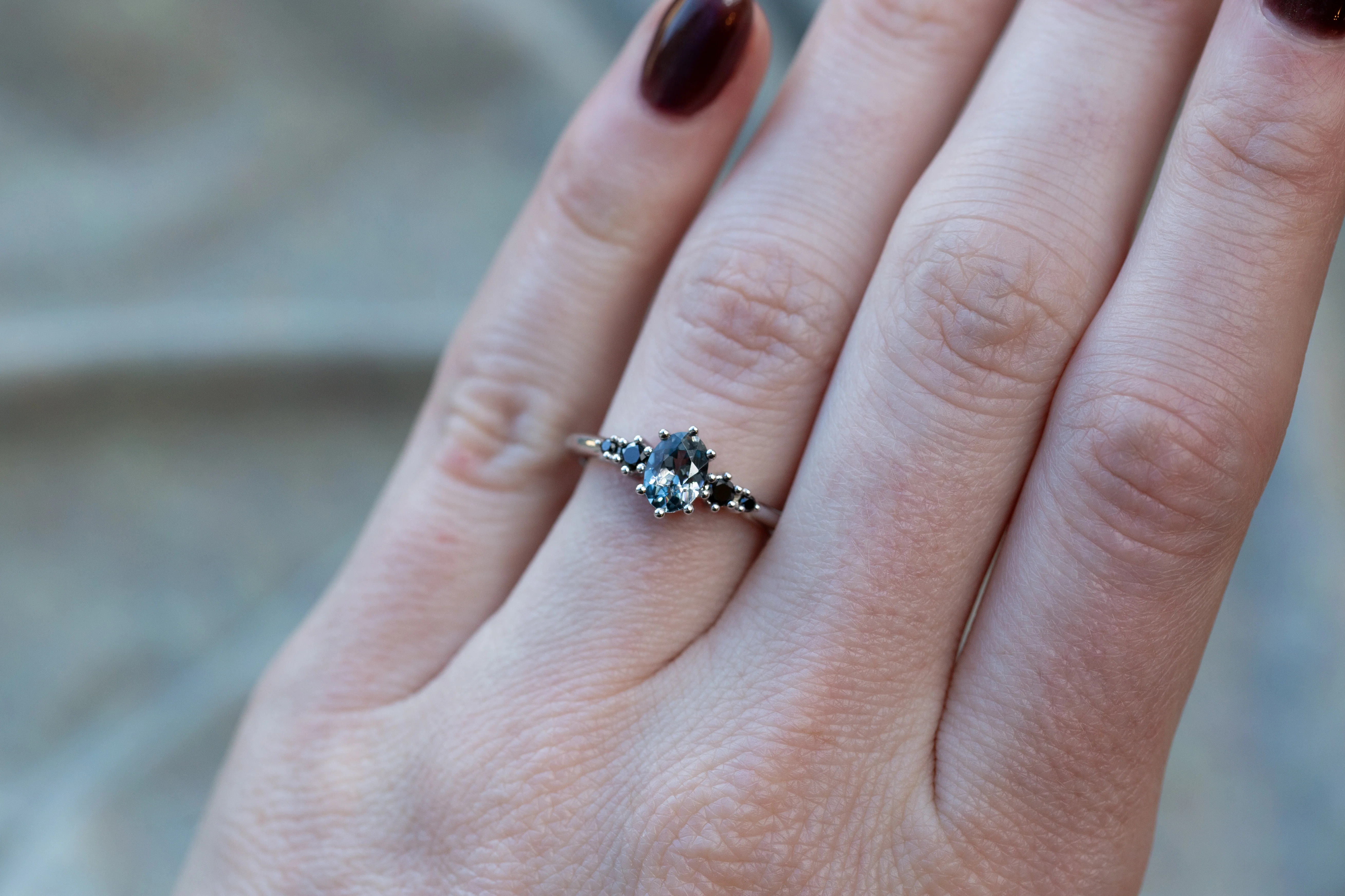 Harbor setting with grey spinel and black diamonds