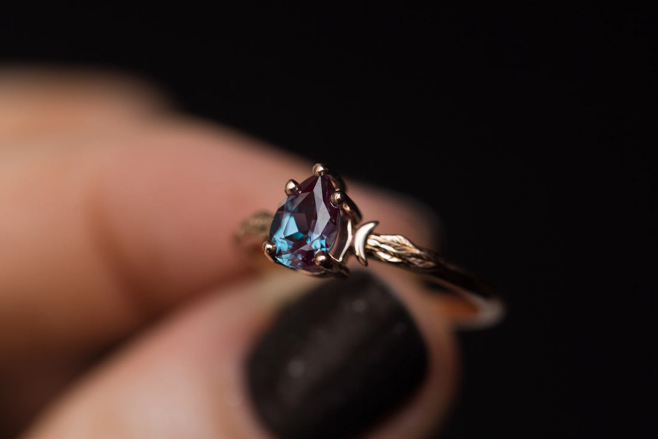 Pear alexandrite Crescent Moon Leaf ring