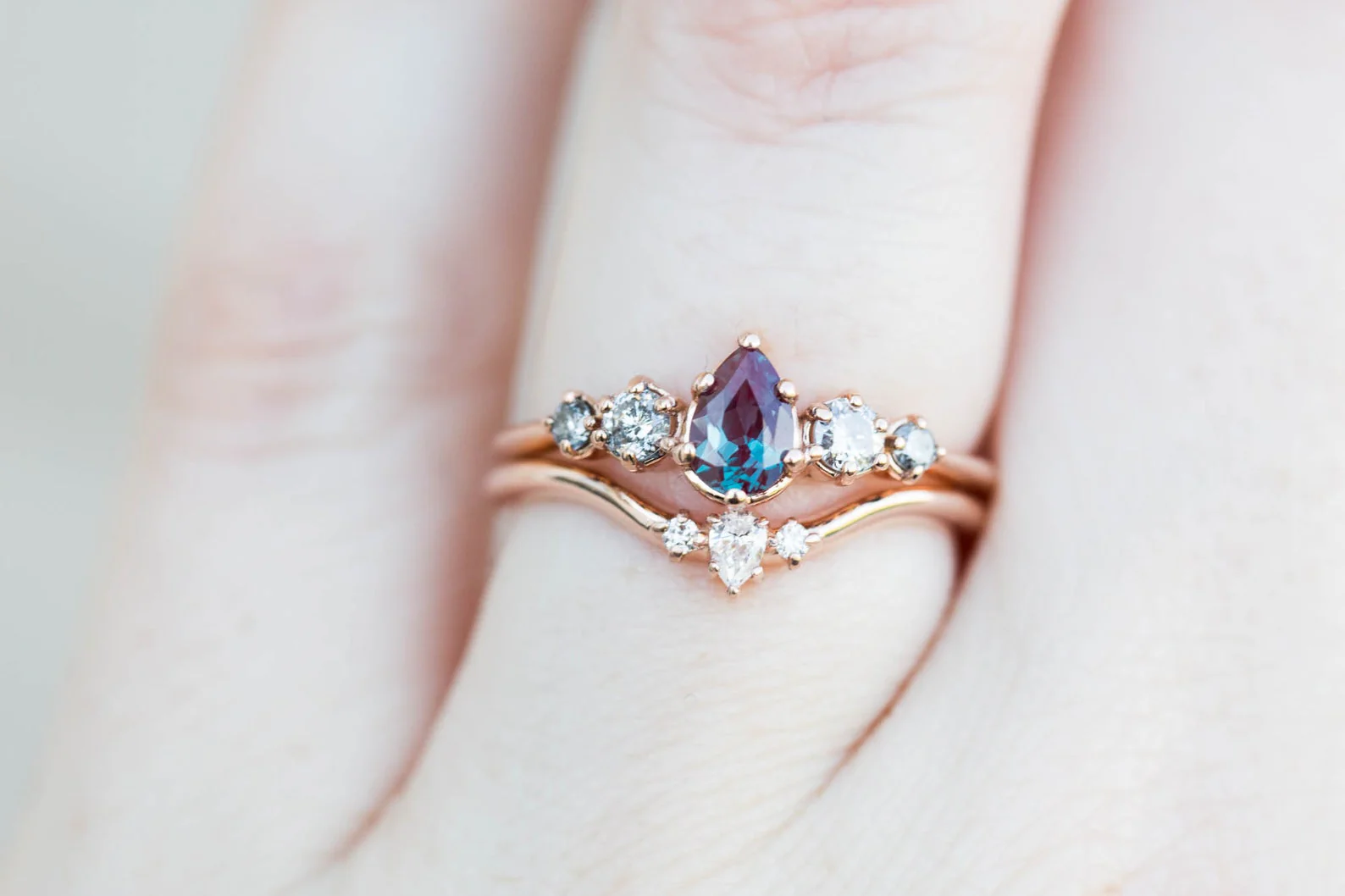 Pear diamond curved wedding band