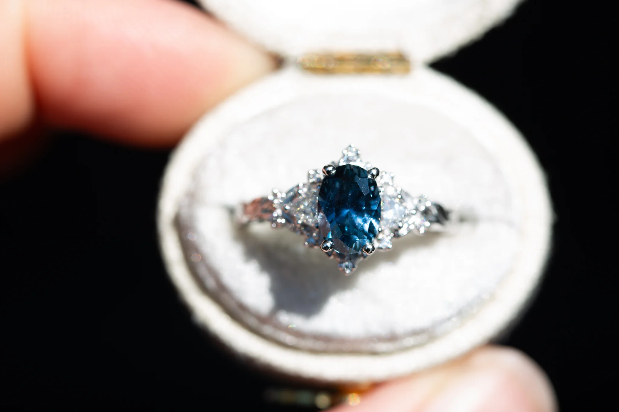 READY TO SHIP - Size 5 14k white gold 1.47ct John Dyer sapphire Briar rose three stone