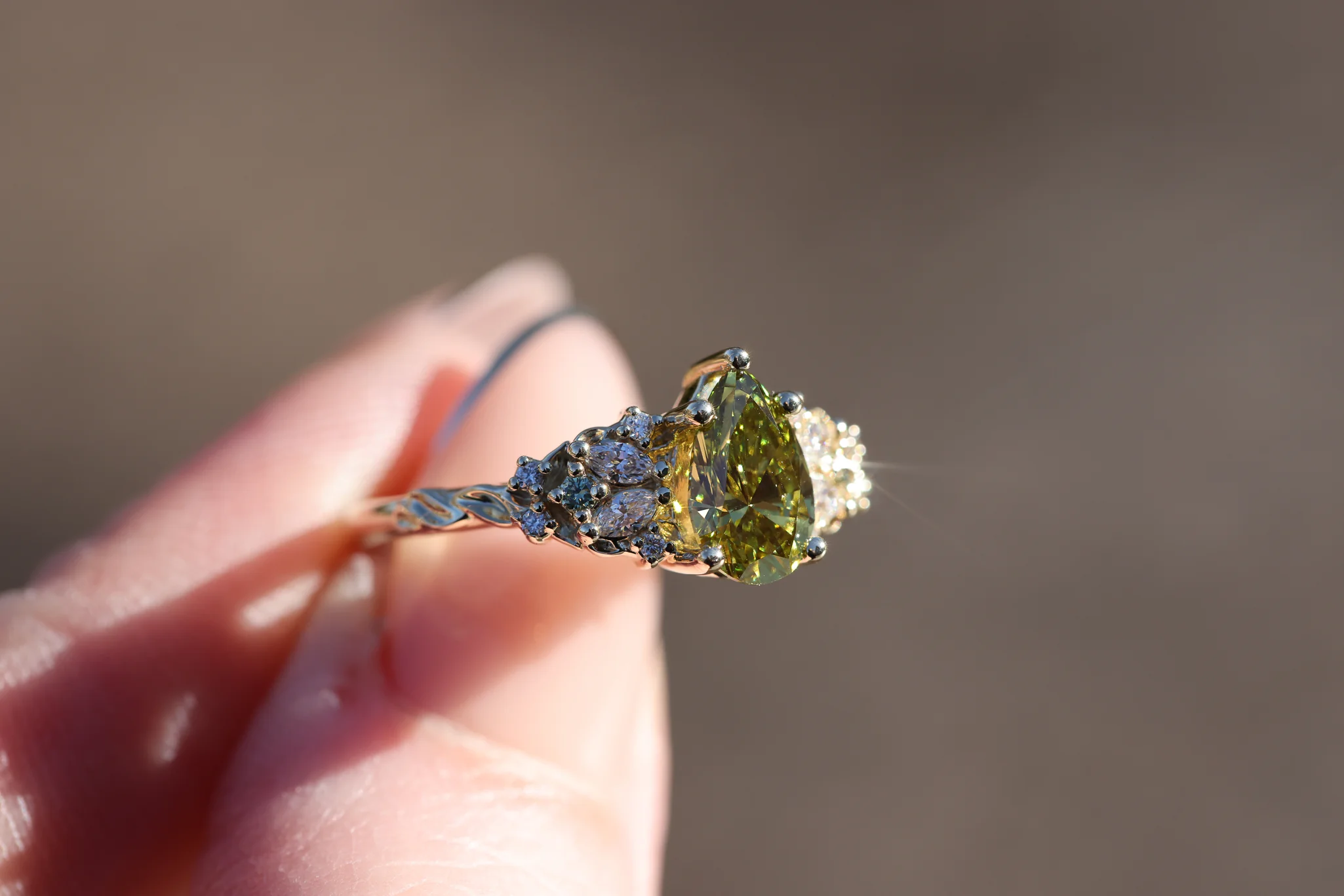 - Side/Accents: 3x1.5mm marquise lab diamond, 1.5mm mint diamond, 1mm lab diamond